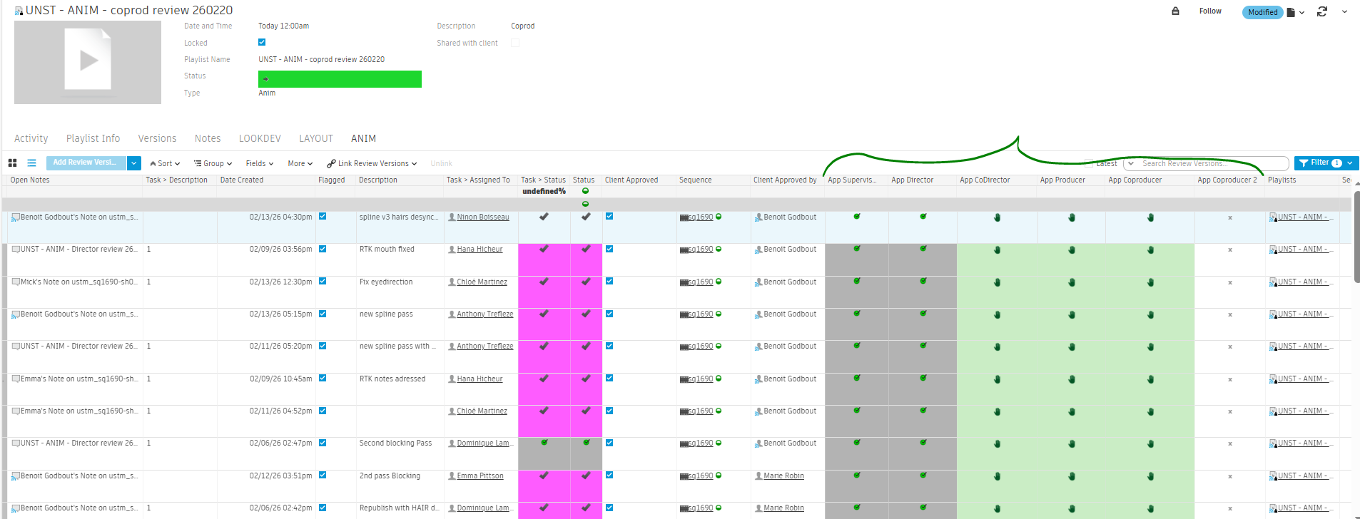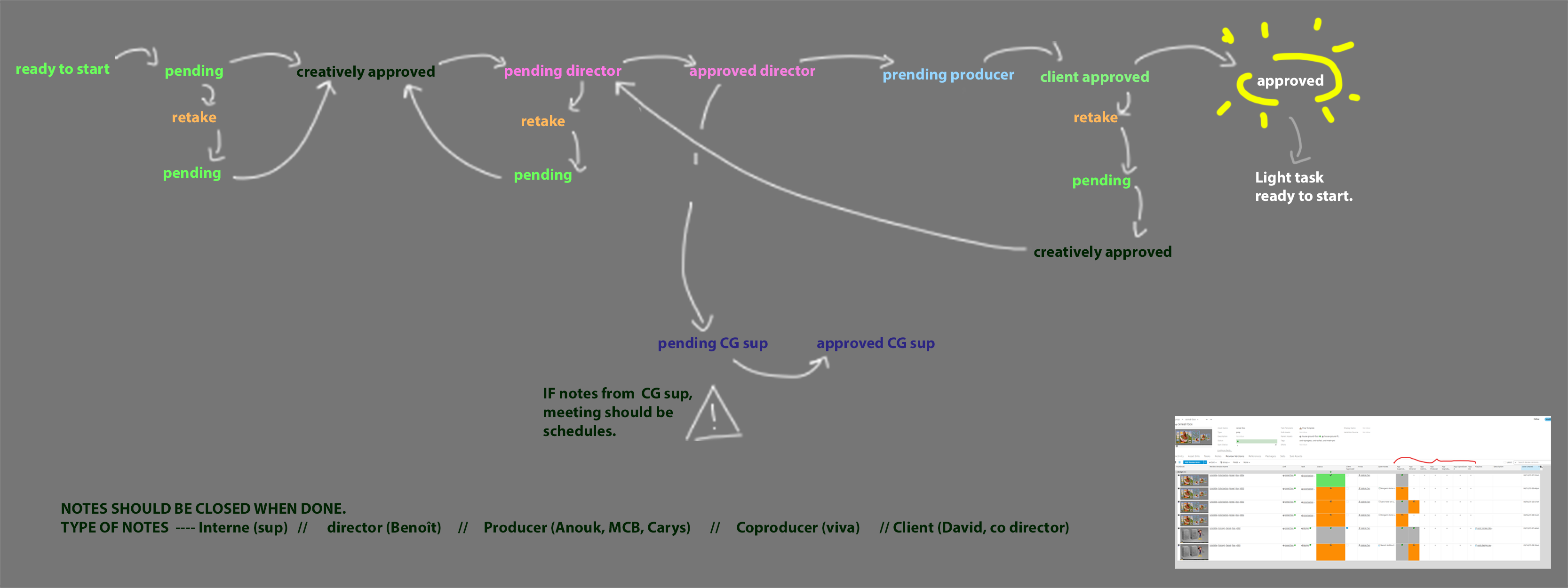 You can put the statuses here in “approved”, 'retake" or “TBD” sometimes :D !