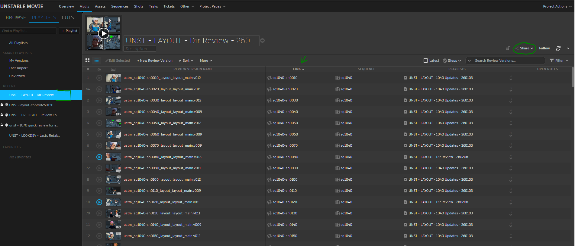 1 - Select the versions they want to show. Only group of shots or full seq.