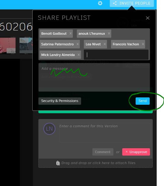 7 - If you need to put comment or note, you can write it in “add a message to this version” (1). It can also be added in the playlist page of SG.